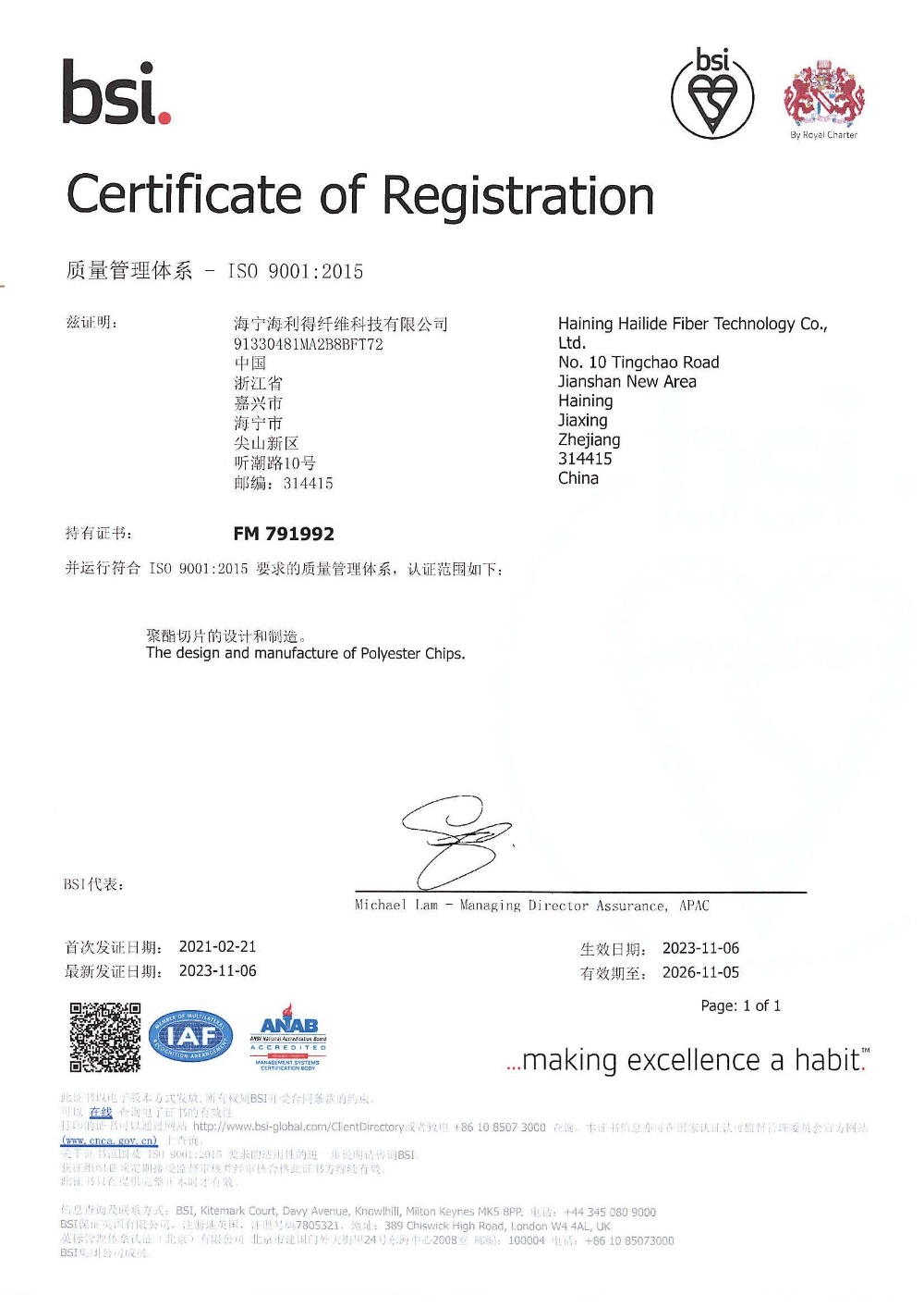 Registration Location: Phuoc Dong IP, Tay Ninh Province (65 KM west of Hochiminh city)
